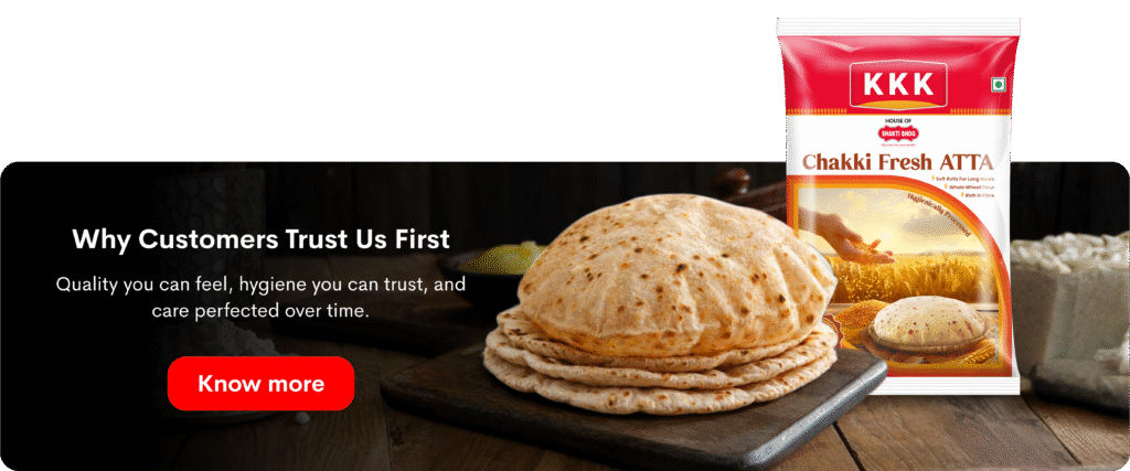 “KKK Chakki Fresh Atta makes rotis unbelievably soft and fluffy. The natural aroma and rich taste instantly tell you it’s made from high-quality wheat. Perfect for everyday meals our family enjoys.”