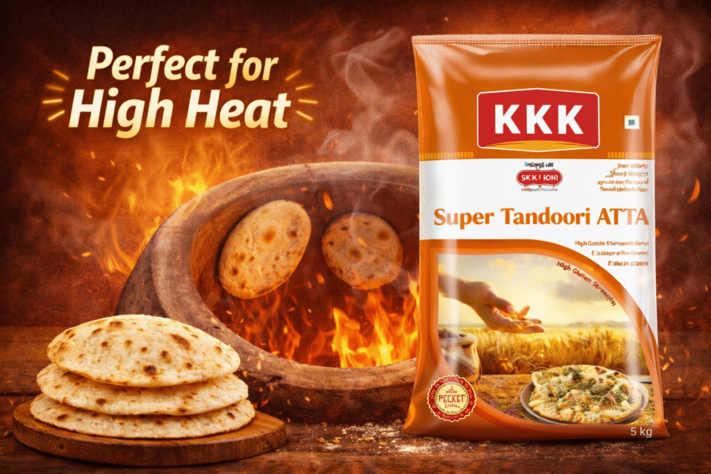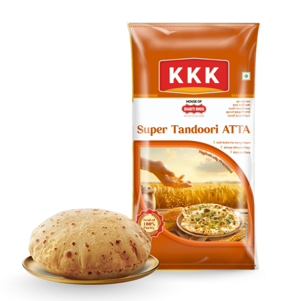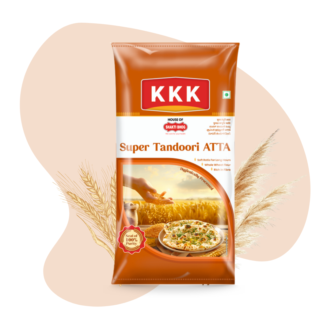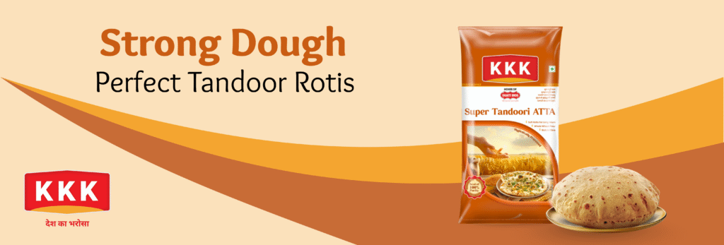 KKK Super Tandoori Atta is specially designed for making tandoori roti, naan, kulcha, and other high-heat baked breads.